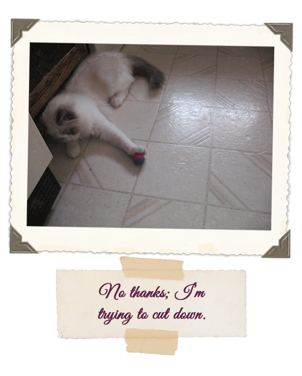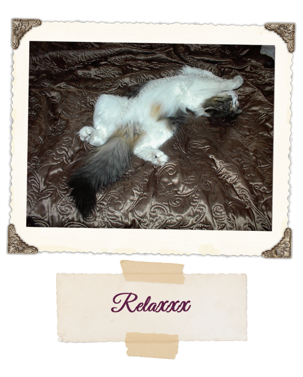 Yeti and Boo are taking a break, and, uncharacteristically, Yeti is actually allowing Boo to soothingly bathe her head.
