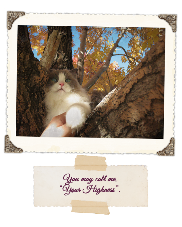 So we showed up at the cat show, determined to find a kitten who fit the name. Like I said, it’s totally backward. Peekaboo came home nameless – well, with an awful shelter name that we immediately rejected – and we tried on a few dozen names with her until we found one she liked. It was the same name as her favorite game – and since she came running when we said it, she basically got to choose her own name. But this time, we had a name and no kitty…yet. Oh, there were lots of cuties there, but my eyes locked and zoomed in on our little glamour girl from afar, and it was all over. The breeder could sense our interest; we were helplessly transparent and agog. The little Yeti dozed in a lushly padded cage waiting for judging results in a few categories, and we had to wait until the end of the show to take possession. The first time I held her it was like trying to cradle a delicate cloud. She wasn’t cheap, as she was a show cat, but she wasn’t of a breeding quality (or price), her breeder said, because she had a small kink in the end of her tail. “She’s perfect to me,” I cooed in the baby’s face as she snoozed in my gentle embrace.