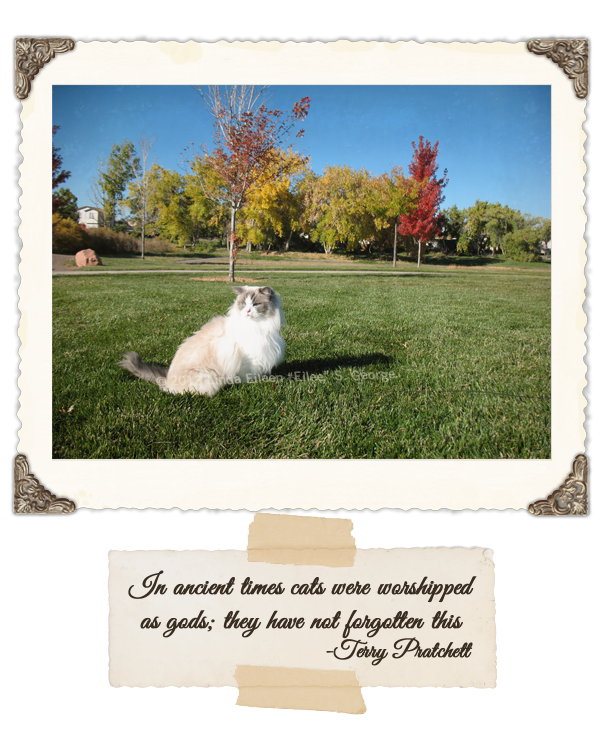 So we showed up at the cat show, determined to find a kitten who fit the name. Like I said, it’s totally backward. Peekaboo came home nameless – well, with an awful shelter name that we immediately rejected – and we tried on a few dozen names with her until we found one she liked. It was the same name as her favorite game – and since she came running when we said it, she basically got to choose her own name. But this time, we had a name and no kitty…yet. Oh, there were lots of cuties there, but my eyes locked and zoomed in on our little glamour girl from afar, and it was all over. The breeder could sense our interest; we were helplessly transparent and agog. The little Yeti dozed in a lushly padded cage waiting for judging results in a few categories, and we had to wait until the end of the show to take possession. The first time I held her it was like trying to cradle a delicate cloud. She wasn’t cheap, as she was a show cat, but she wasn’t of a breeding quality (or price), her breeder said, because she had a small kink in the end of her tail. “She’s perfect to me,” I cooed in the baby’s face as she snoozed in my gentle embrace.